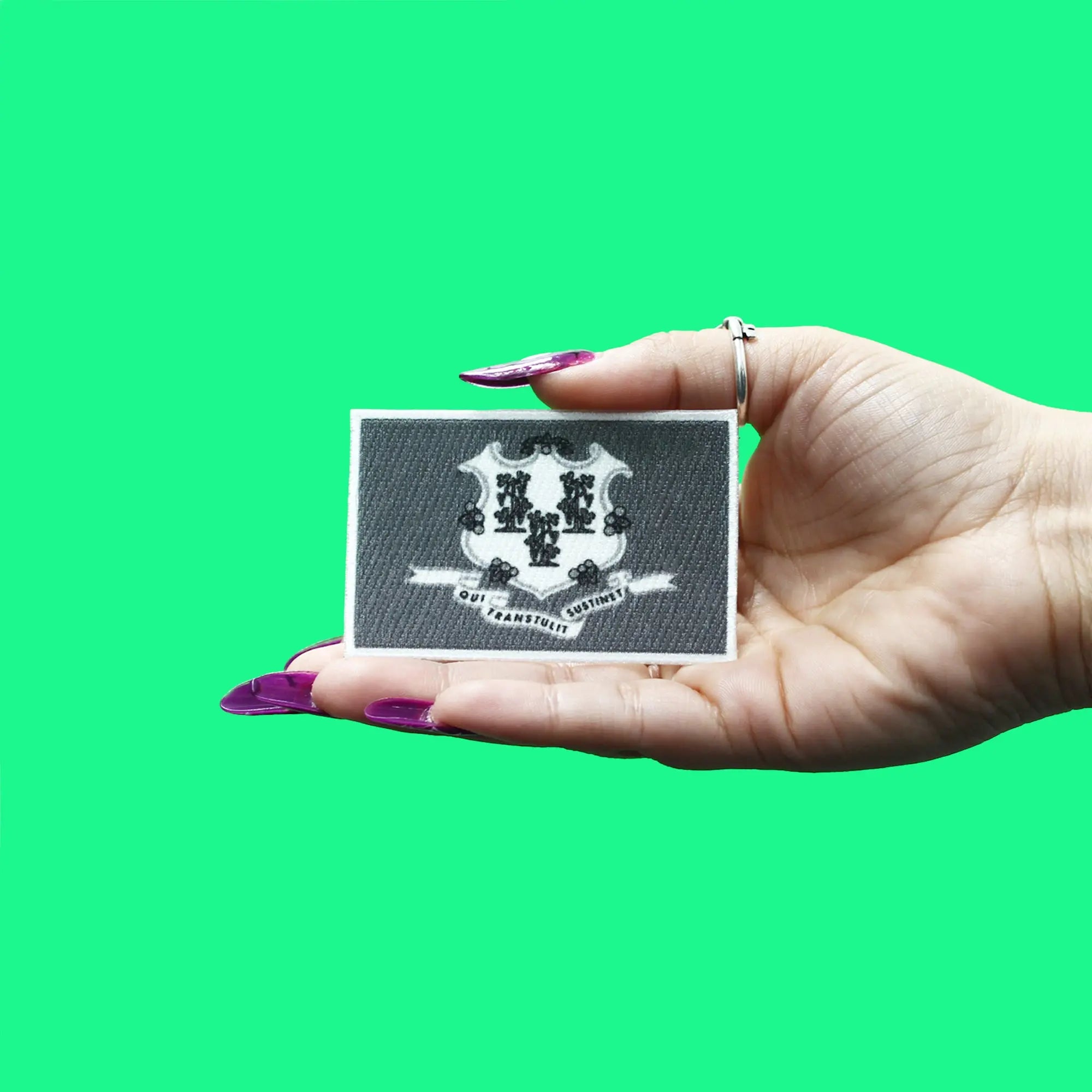 Connecticut Patch State Flag Grayscale Embroidered Iron On Connecticut Patch State Flag Grayscale Embroidered Iron On