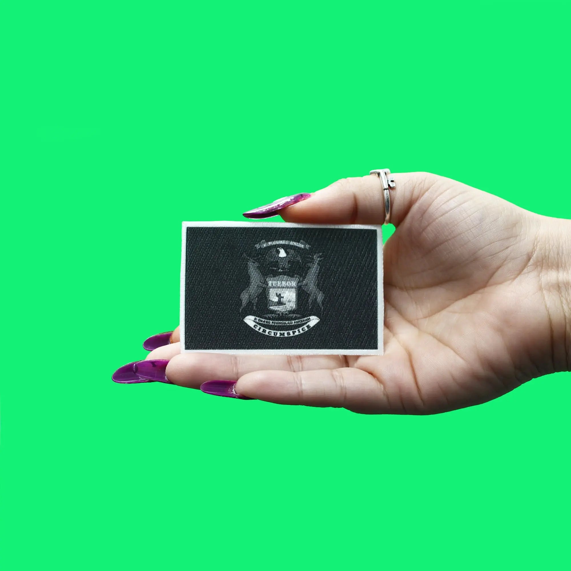 Michigan Patch State Flag Grayscale Embroidered Iron On Michigan Patch State Flag Grayscale Embroidered Iron On