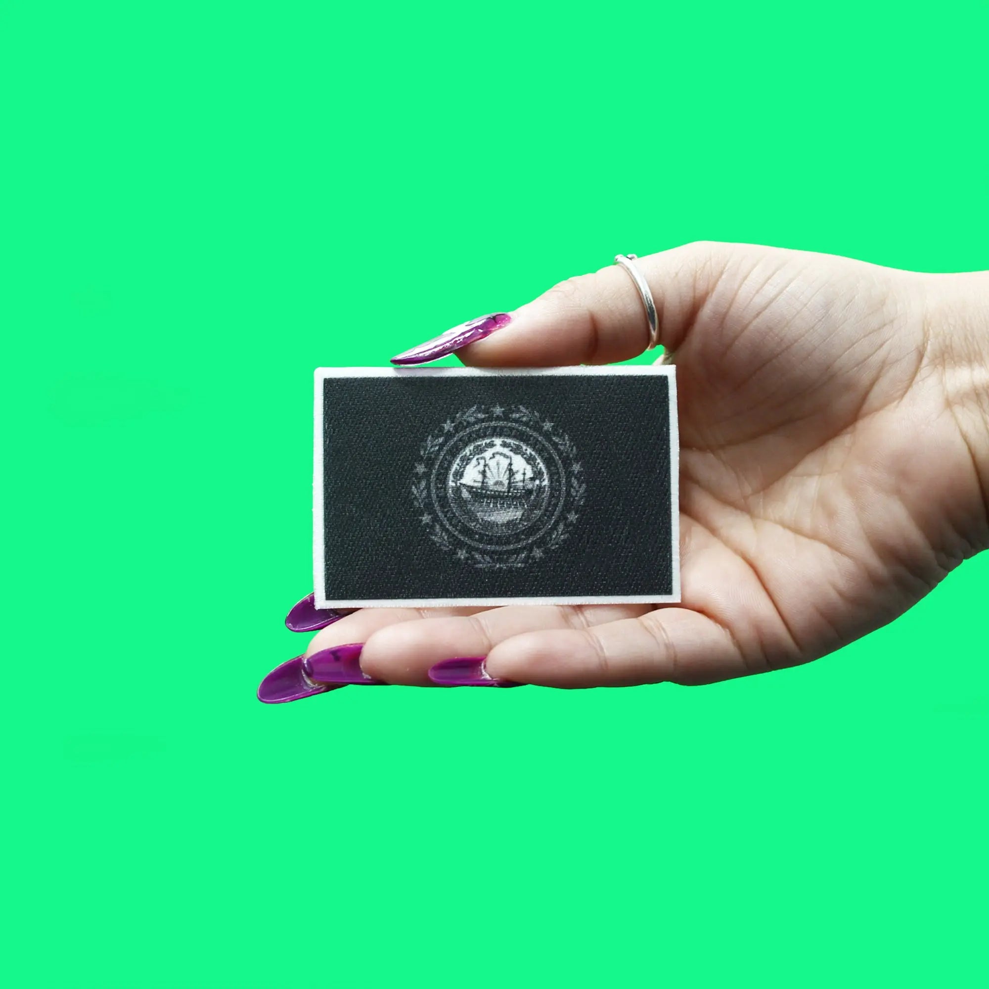 New Hampshire Patch State Flag Grayscale Embroidered Iron On New Hampshire Patch State Flag Grayscale Embroidered Iron On