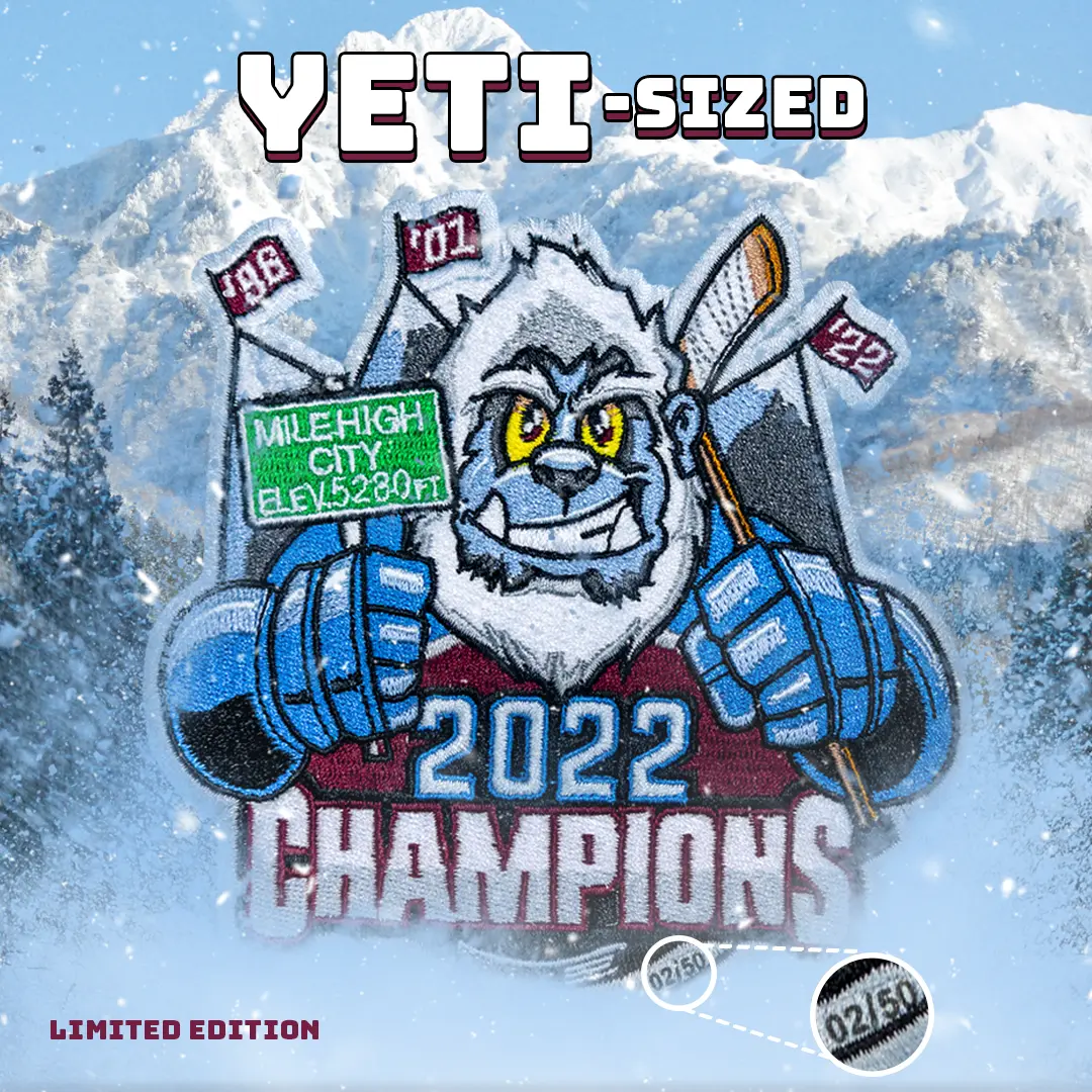2022 Champions Denver Colorado Yeti Mascot Hockey Parody Patch brodé limité