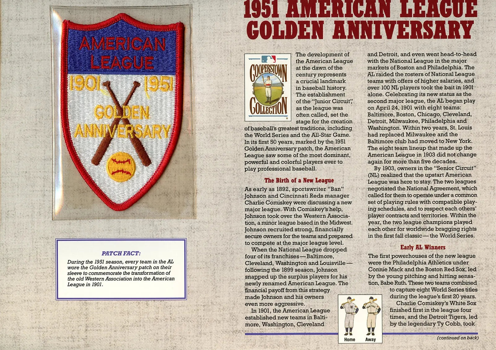 1951 American League Golden Anniversary Willabee & Ward Patch With Stat Card