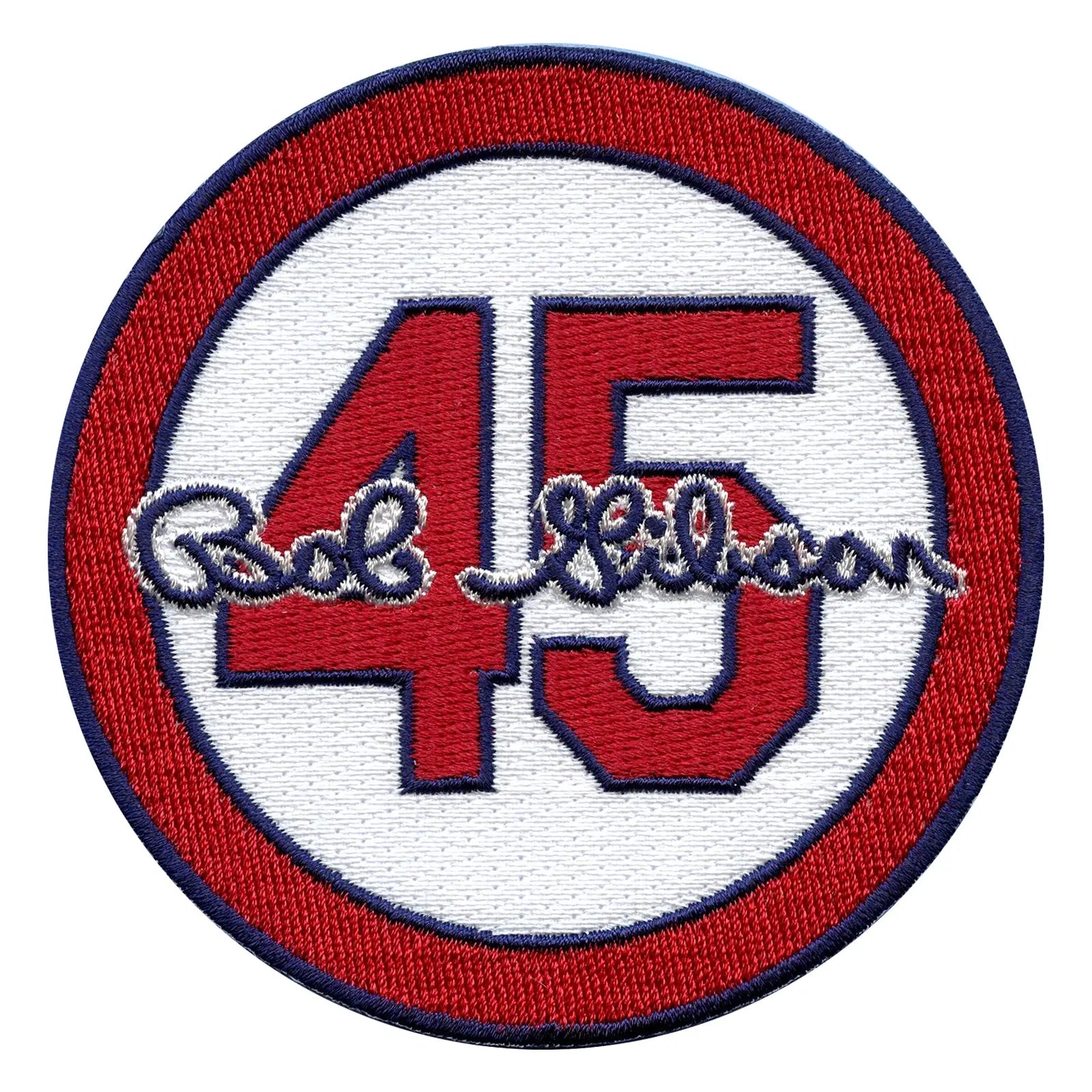 This is the Bob Gibson 45 Memorial St. Louis Cardinals jersey patch, as worn by the players. This patch is designed for commemorative, nostalgic display, and collection.