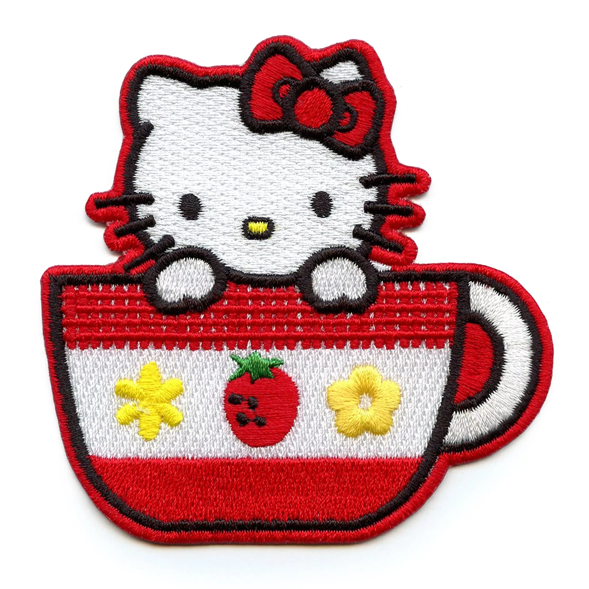 Hello Kitty Tea Cup Iron On Embroidered Patch