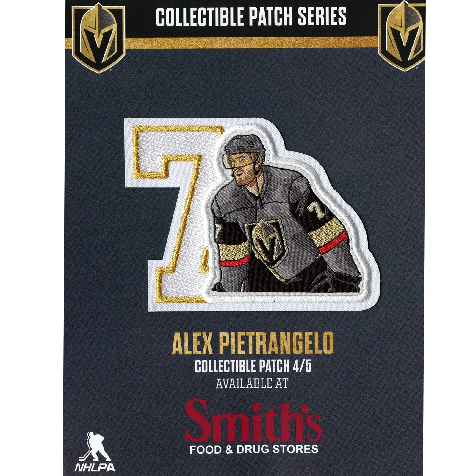 Add this official Alex Pietrangelo #7 patch for the Las Vegas Golden Knights to your collection. This limited edition NHLPA patch is designed for commemorative, nostalgic display, and collection. Patch measures approximately 3.5 inches wide by 2.85 inches tall.